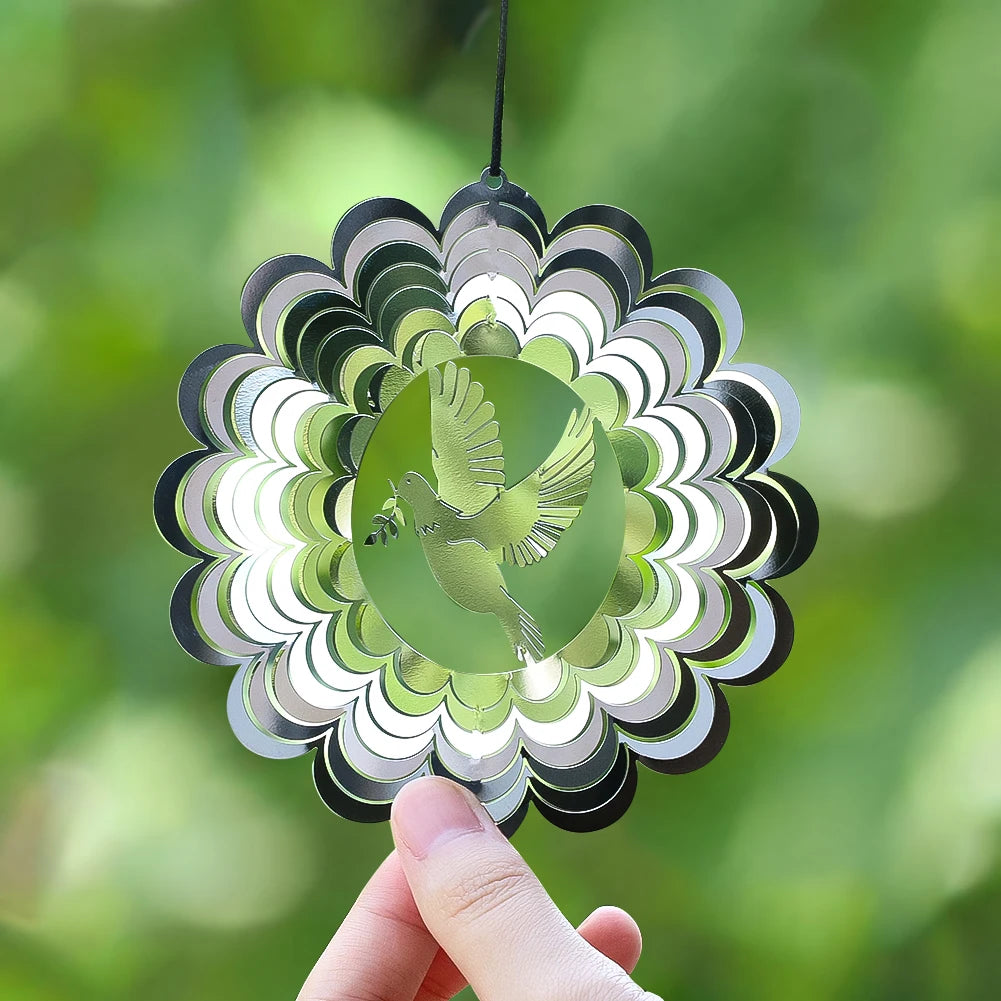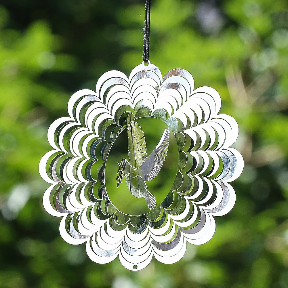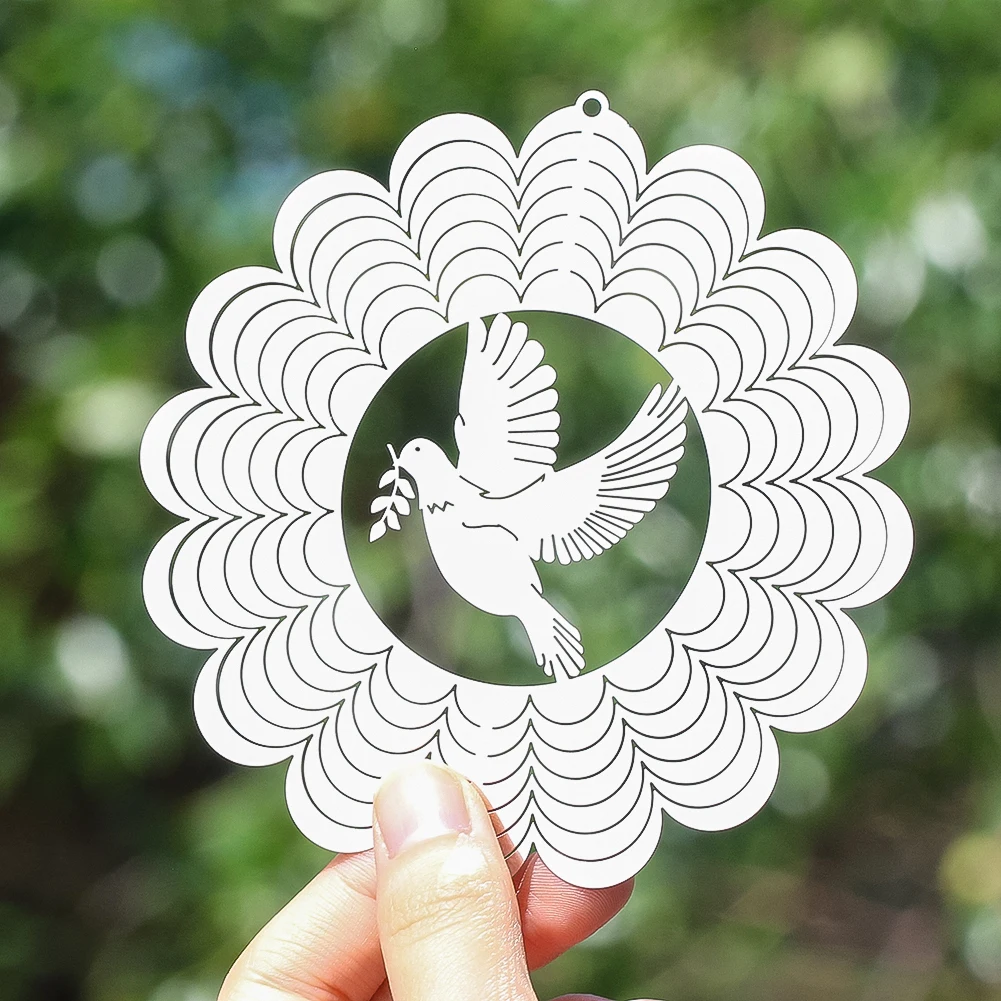 Elevate your outdoor or indoor space with this elegant 3D Dove Wind Chime. Crafted from stainless steel, this wind spinner unfolds into a stunning 3D shape, catching and reflecting light beautifully. Ideal for adding a touch of serenity and artistic flair to your garden, patio, or even indoor spaces, it serves as both a decorative piece and a gentle bird repeller.