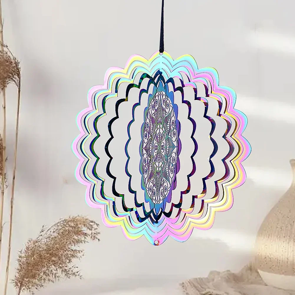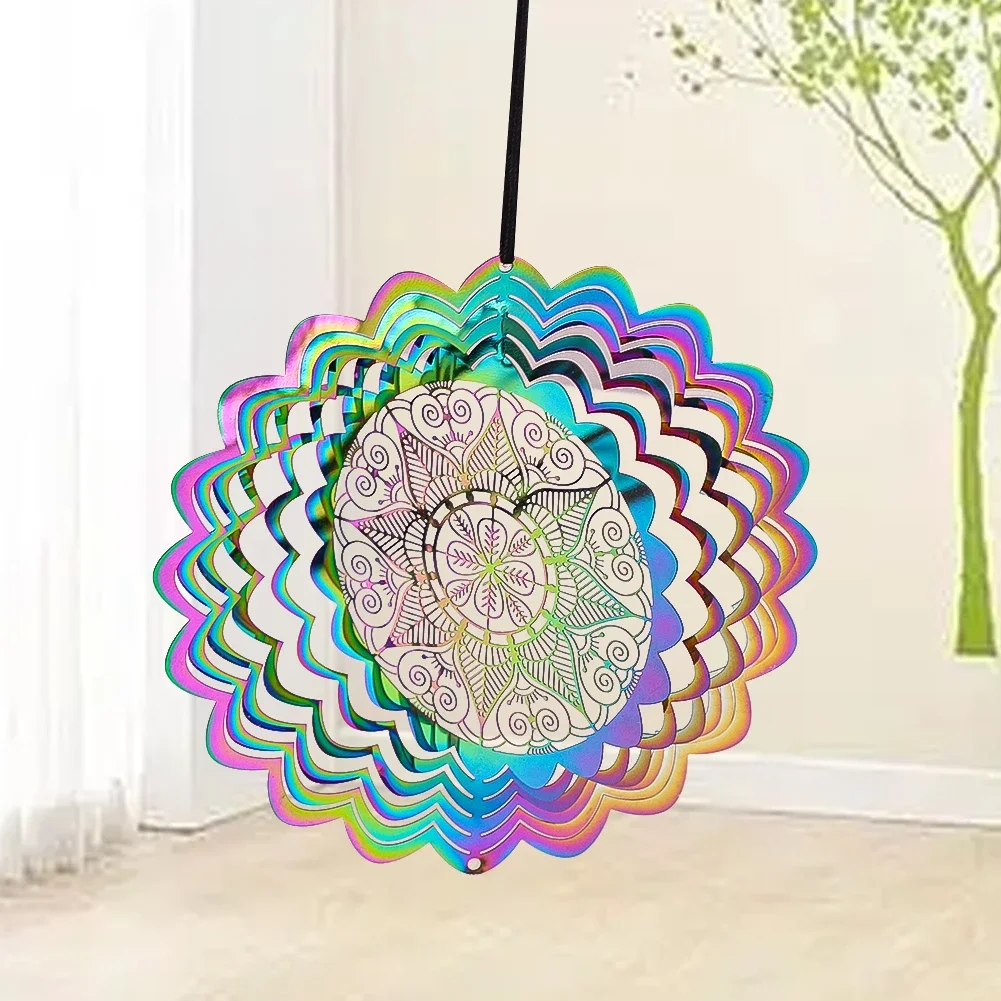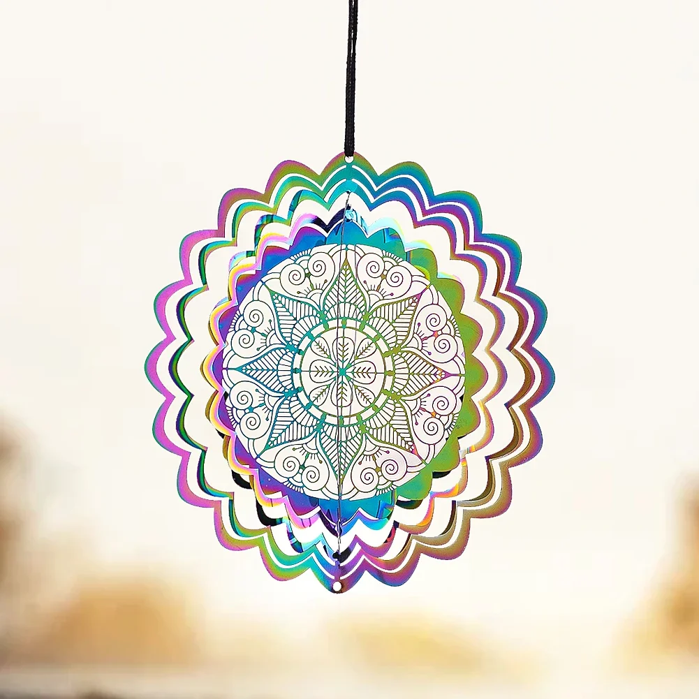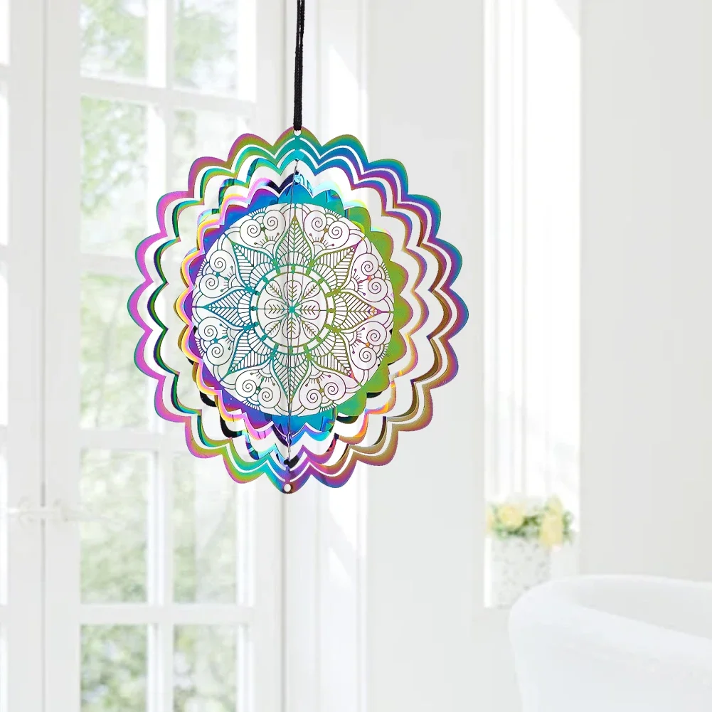 🌿 Enchanting Anywhere: Whether hanging in the breeze outdoors or twirling inside your home, the Celestial Bloom 3D Mandala Wind Spinner will mesmerize and delight.