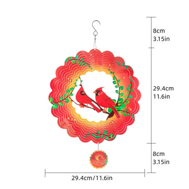 Elevate your outdoor decor with the Cardinal Harmony Twirl, a captivating 3D metal sculpture that dances in the breeze. The vivid red bird design brings life to your garden, yard, or patio, creating a mesmerizing display as it spins in the wind.