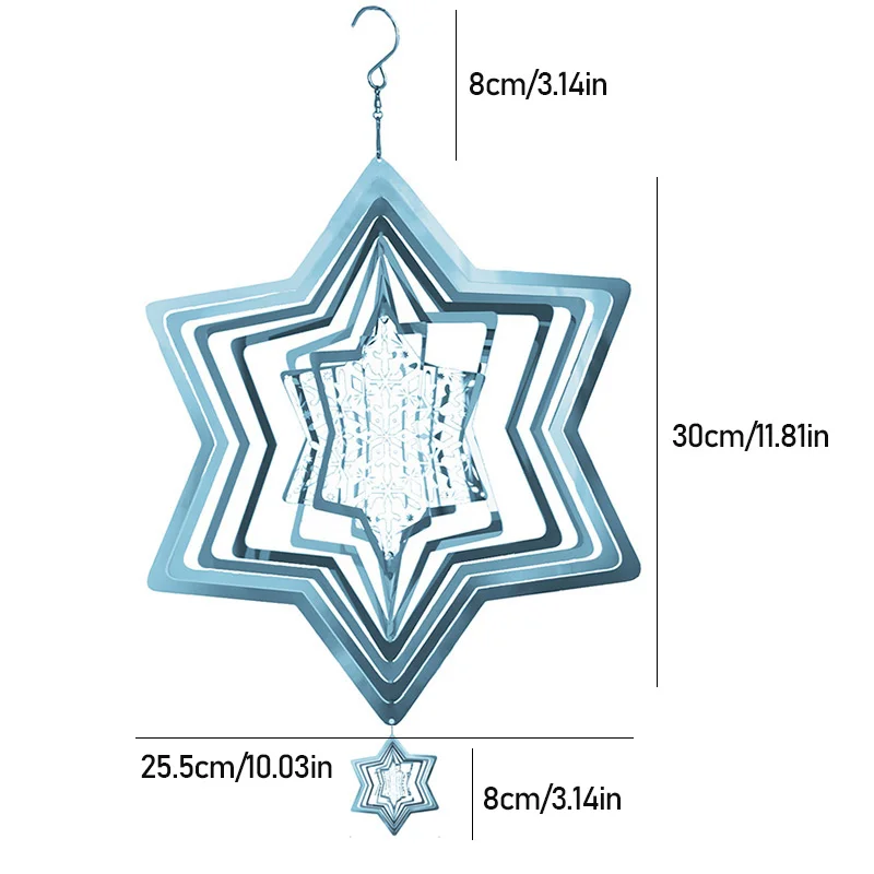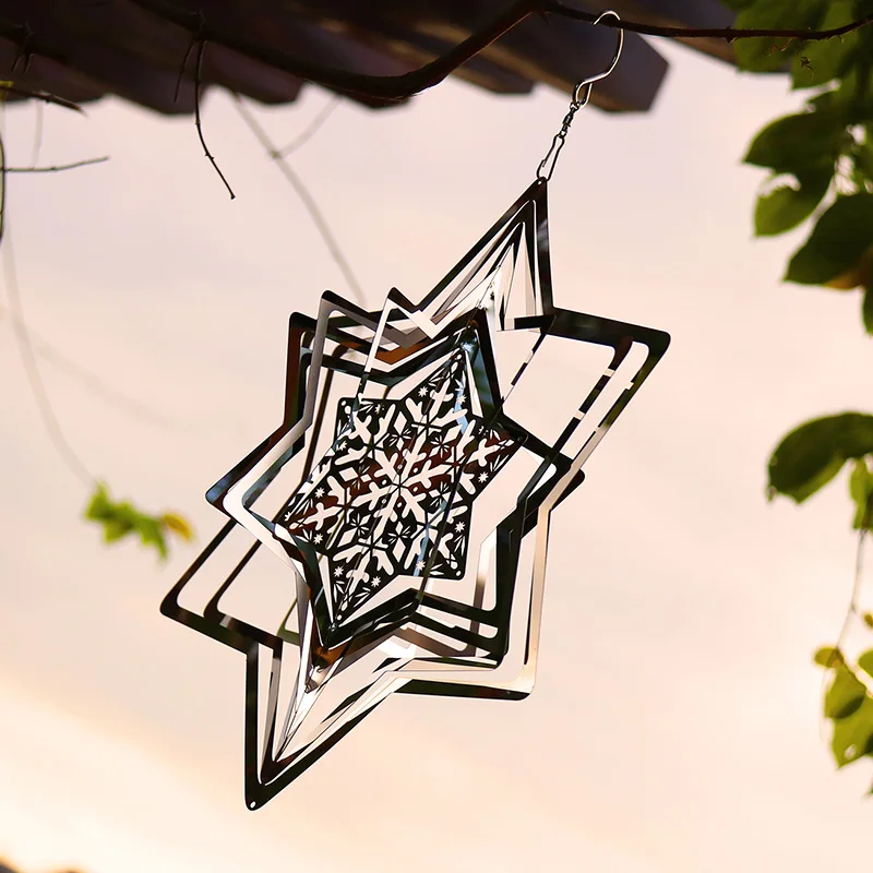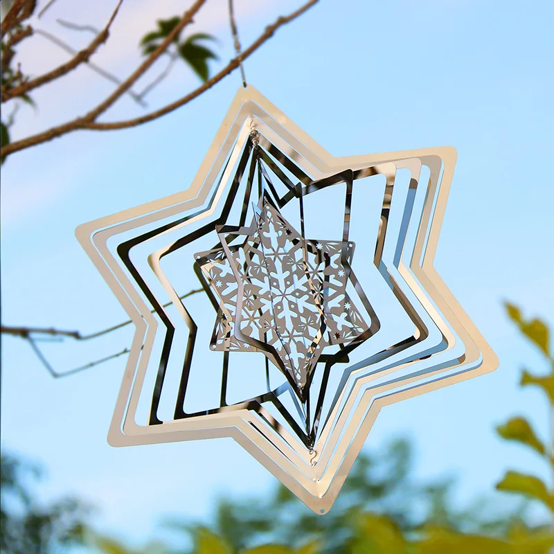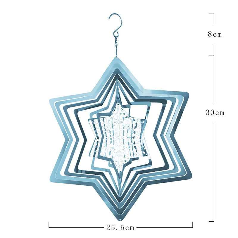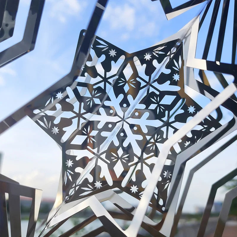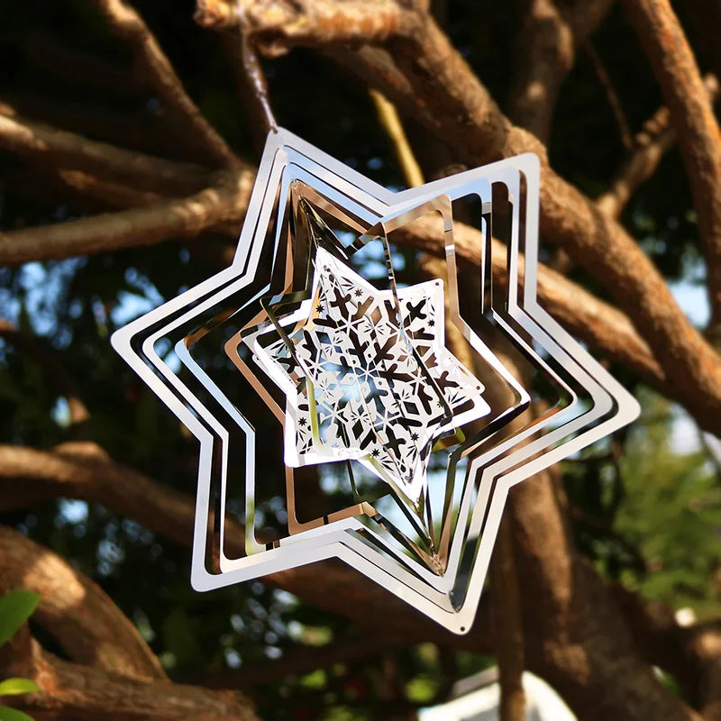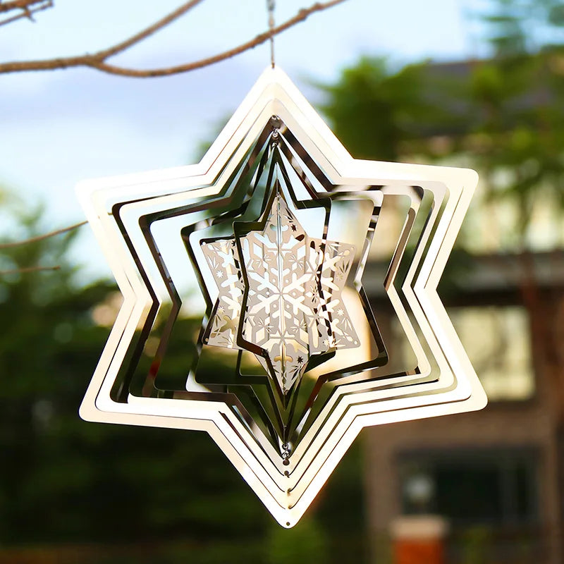 Elevate your holiday decor with this enchanting snowflake wind spinner. Crafted from stainless steel, this 3D metal wind chime brings the magic of Christmas to your garden, home, or balcony. Watch as it twirls in the wind, reflecting light in stunning patterns that capture the festive spirit.