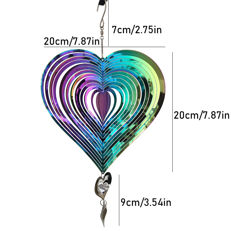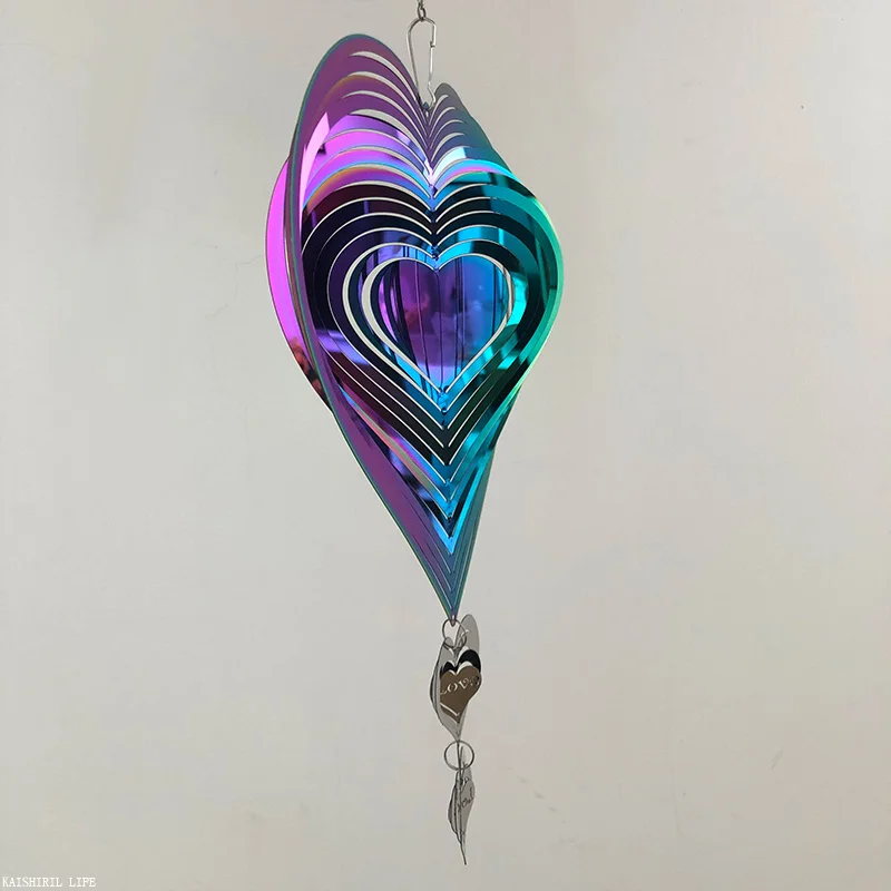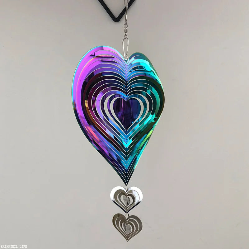 The Eternal Love 3D Wind Spinner is more than just a decorationâit's a symbol of love that dances in the breeze, making it the perfect gift for Valentine's Day, weddings, or any special occasion. Made from high-quality stainless steel, this mesmerizing wind spinner features a mirror reflection design that beautifully reflects light and color, creating a breathtaking visual display. Whether hung in your garden, bedroom, or balcony, this wind spinner adds a touch of elegance and romance to any space.