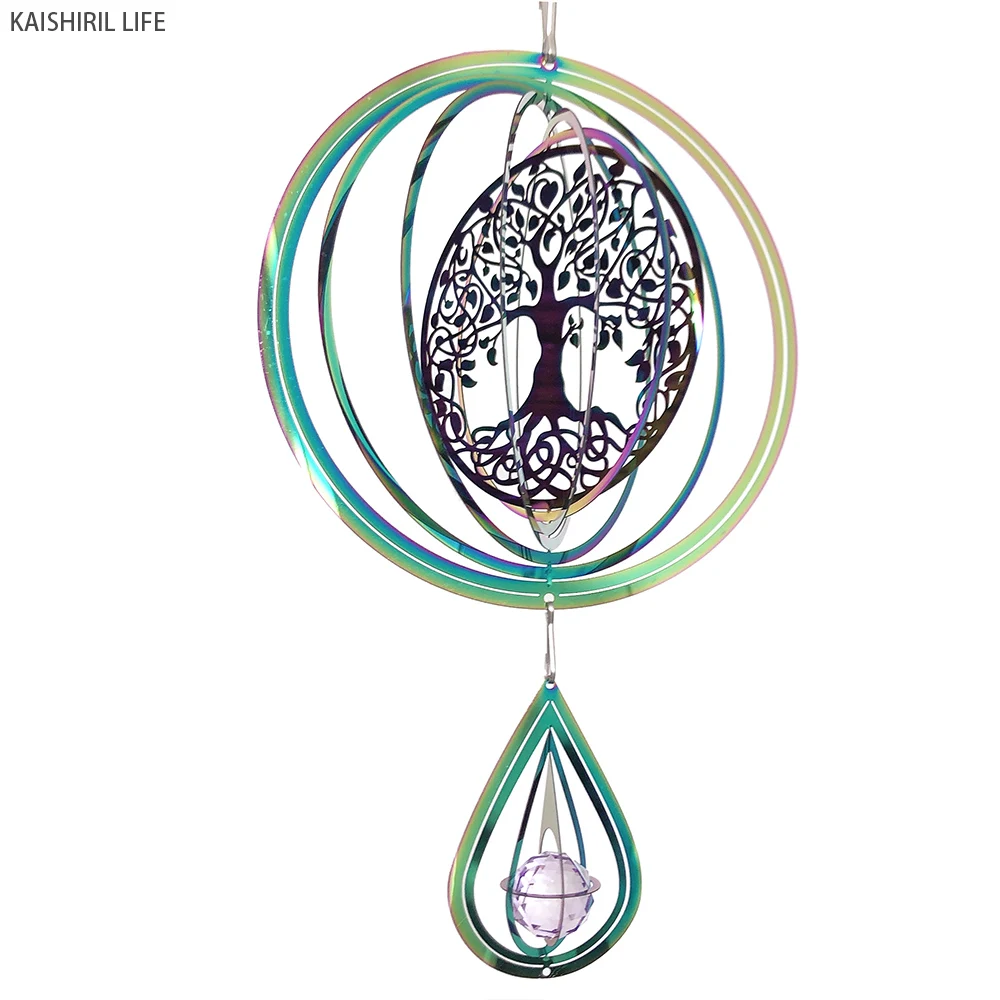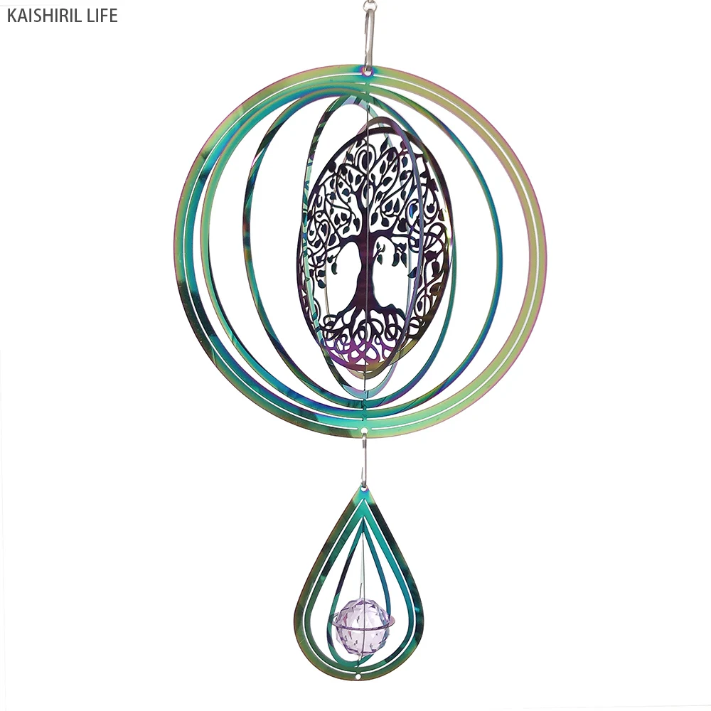 Elevate your space with the mesmerizing Tree of Life Mandala Wind Spinner, a unique fusion of spiritual symbolism and elegant design. This stunning wind chime features a Tree of Life motif intertwined with mandala and lotus patterns, creating a captivating visual effect as it spins. Crafted from durable stainless steel, this wind spinner adds a touch of serenity and sophistication to your garden, balcony, or home decor.