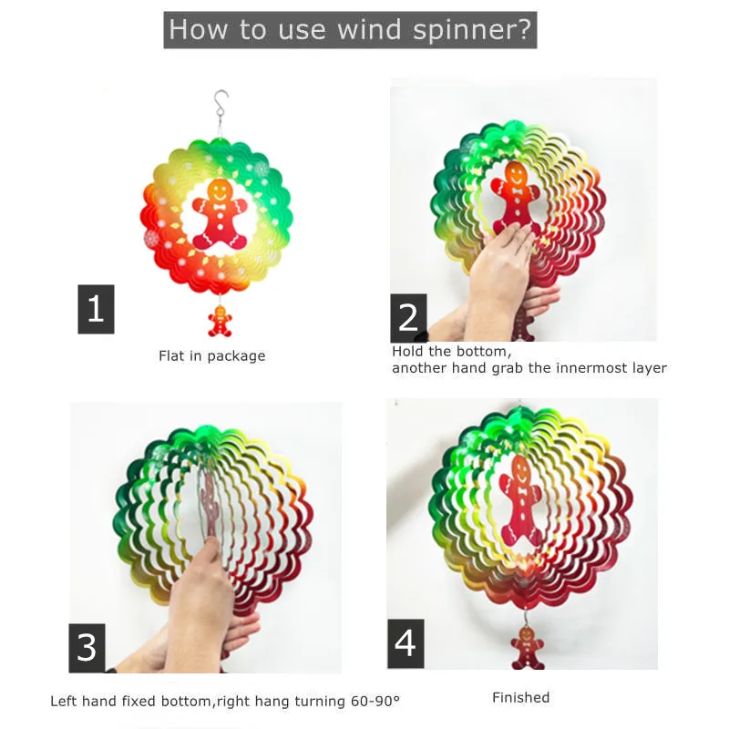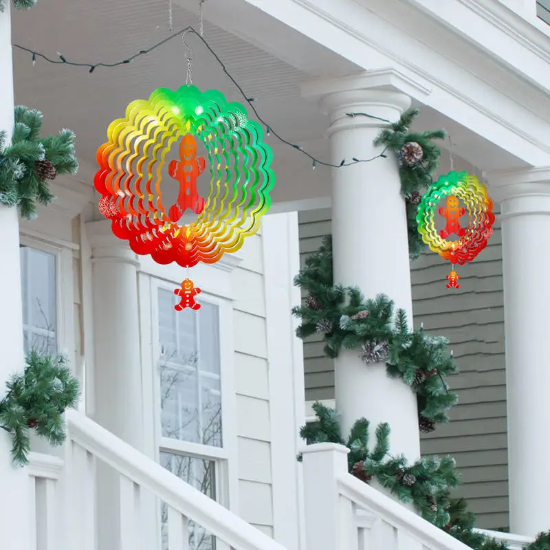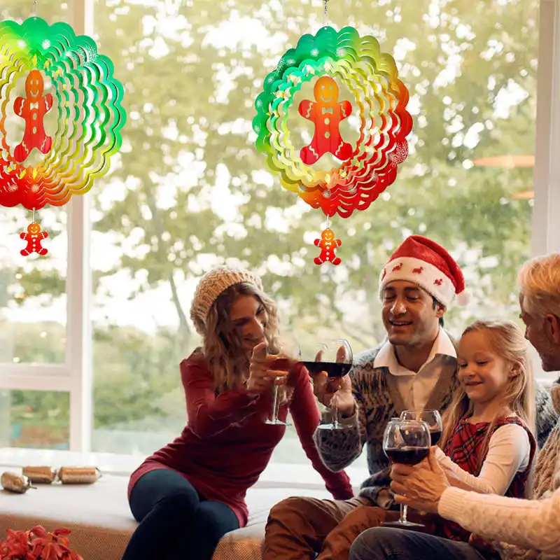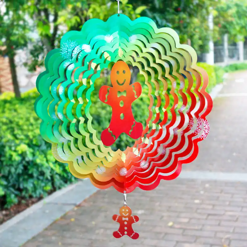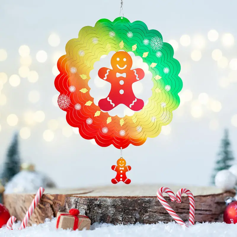 Bring holiday cheer to your garden or home with this delightful Gingerbread Man Wind Spinner. Crafted from durable stainless steel, this 3D kinetic metal ornament spins gracefully in the breeze, creating a vibrant rainbow effect that catches the eye.