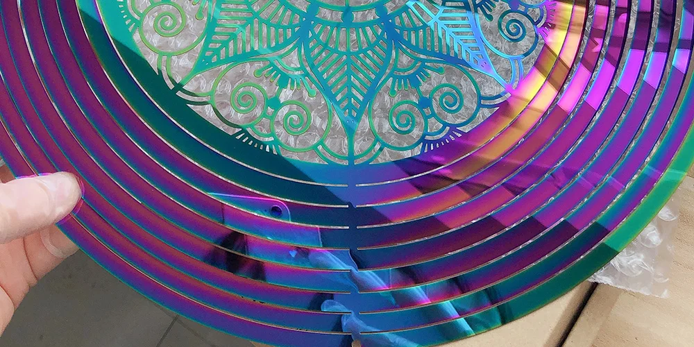 Our wind spinners are made from high-quality stainless steel, ensuring durability and resistance to the elements. The colors are UV printed to ensure they remain vibrant even in outdoor settings.