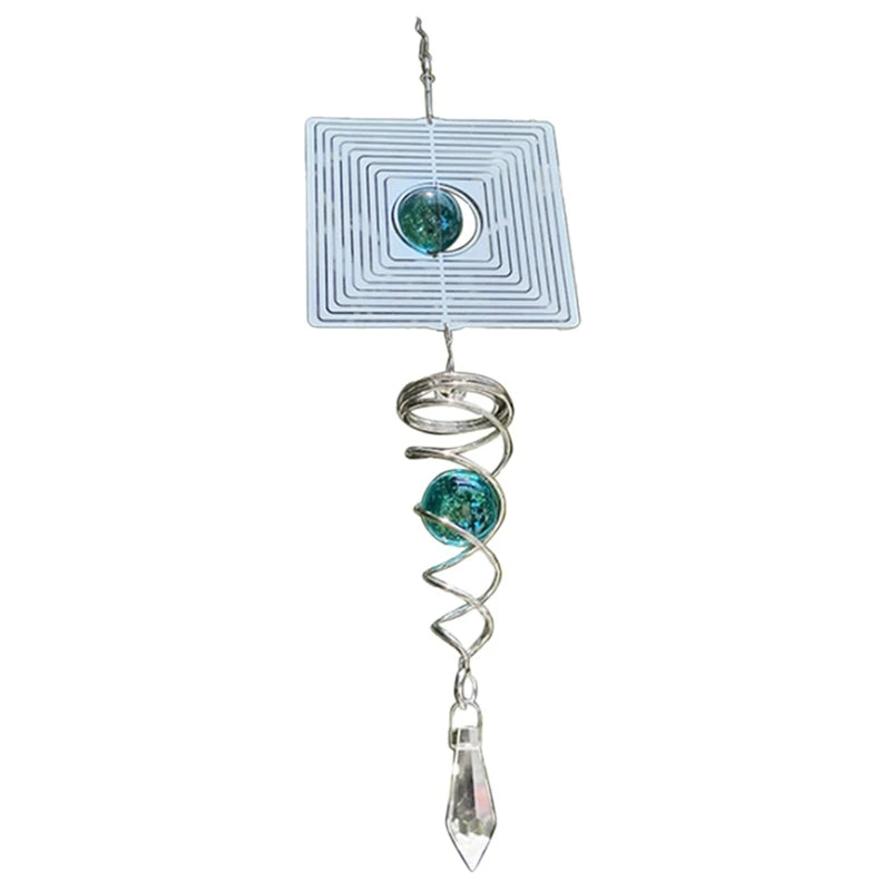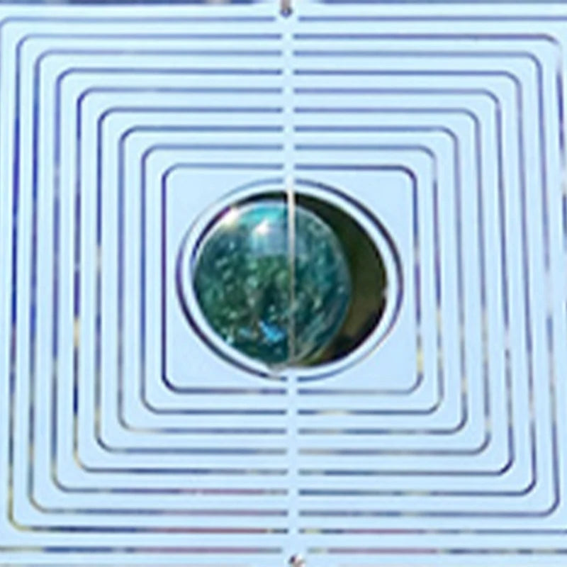 Our Green Energy wind spinner features a sleek square design with a mesmerizing green ball at its center, reflecting nature's calming hues. Complete with a matching pendant, this spinner adds vibrant charm to any garden or outdoor space.