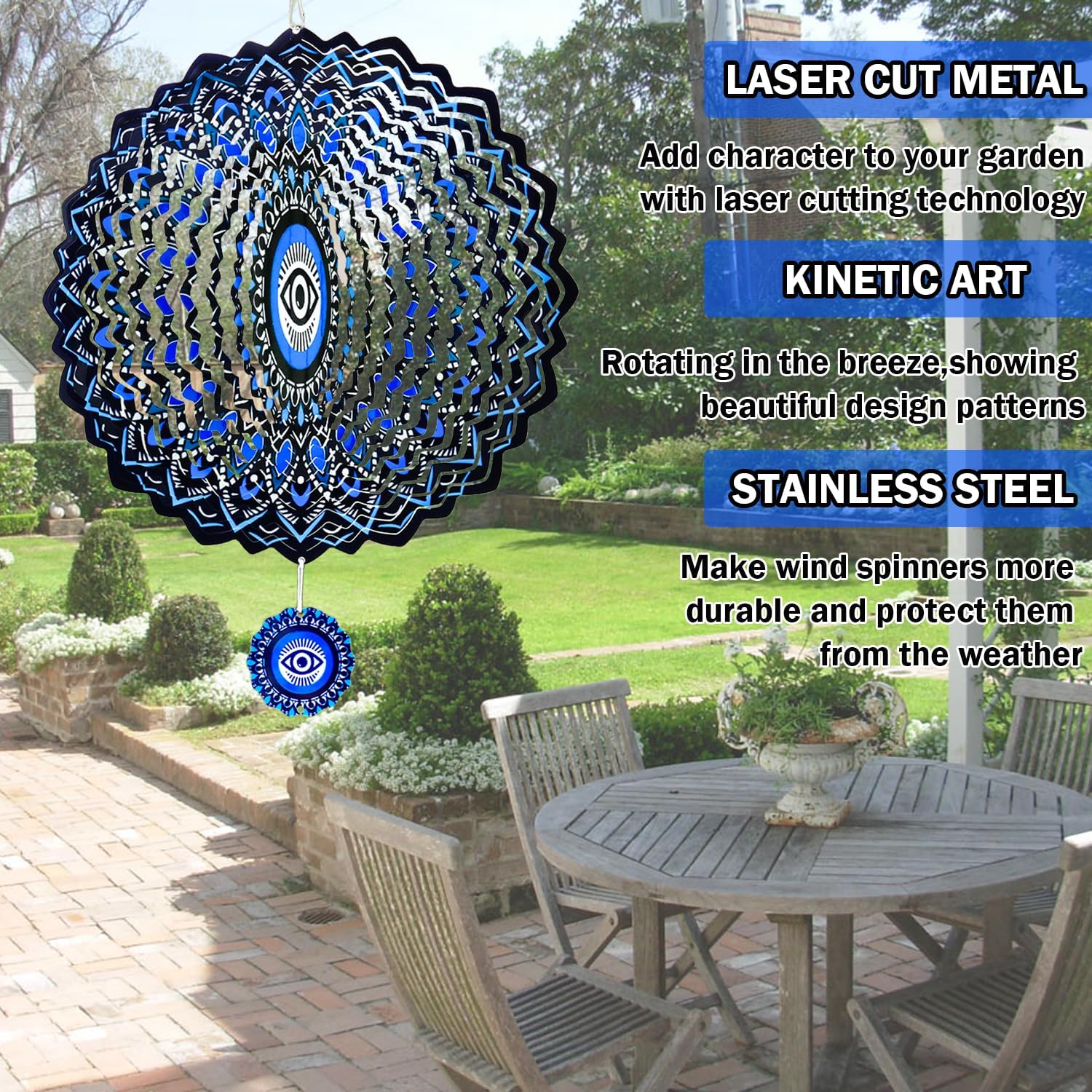 👁️✨ Ward Off Negativity with Style! 🌟 Protect your space with the mesmerizing 3D Evil Eye Wind Spinner. Inspired by the traditional Turkish evil eye, this kinetic yard art is designed to bring good fortune and keep negative energy at bay. Crafted from durable 0.5mm stainless steel, this wind spinner features a dynamic design that catches the breeze and reflects light, creating a captivating visual effect in your garden or outdoor space.