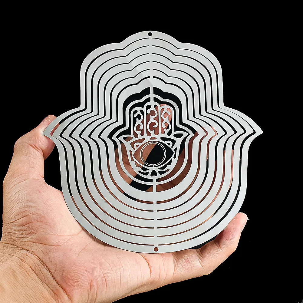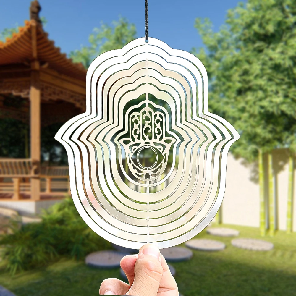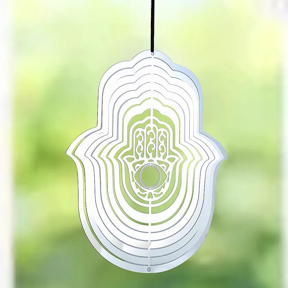Elevate your garden or outdoor space with the Hand of Fatima 3D Rotating Wind Spinner. Crafted from high-quality stainless steel, this wind chime features a beautifully laser-cut Hand of Fatima design, known for its protective and calming properties. Its reflective surface enhances the visual appeal as it spins gently in the breeze, creating a mesmerizing display.