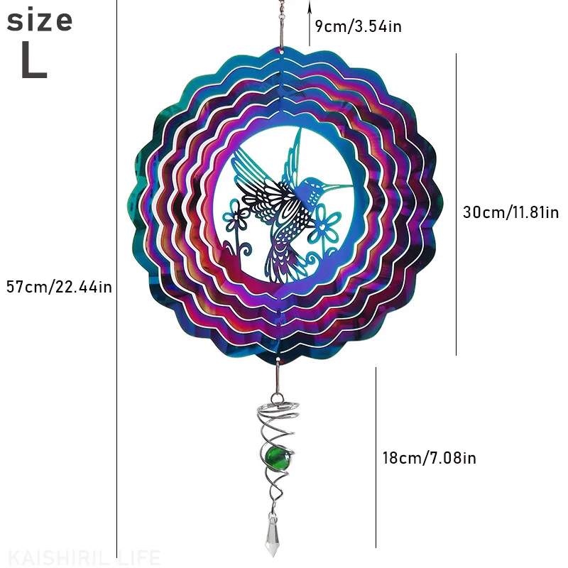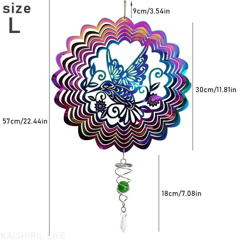 - Delicate Hummingbird Design: Adorned with a detailed hummingbird motif, this wind spinner creates enchanting visual effects as it spins.