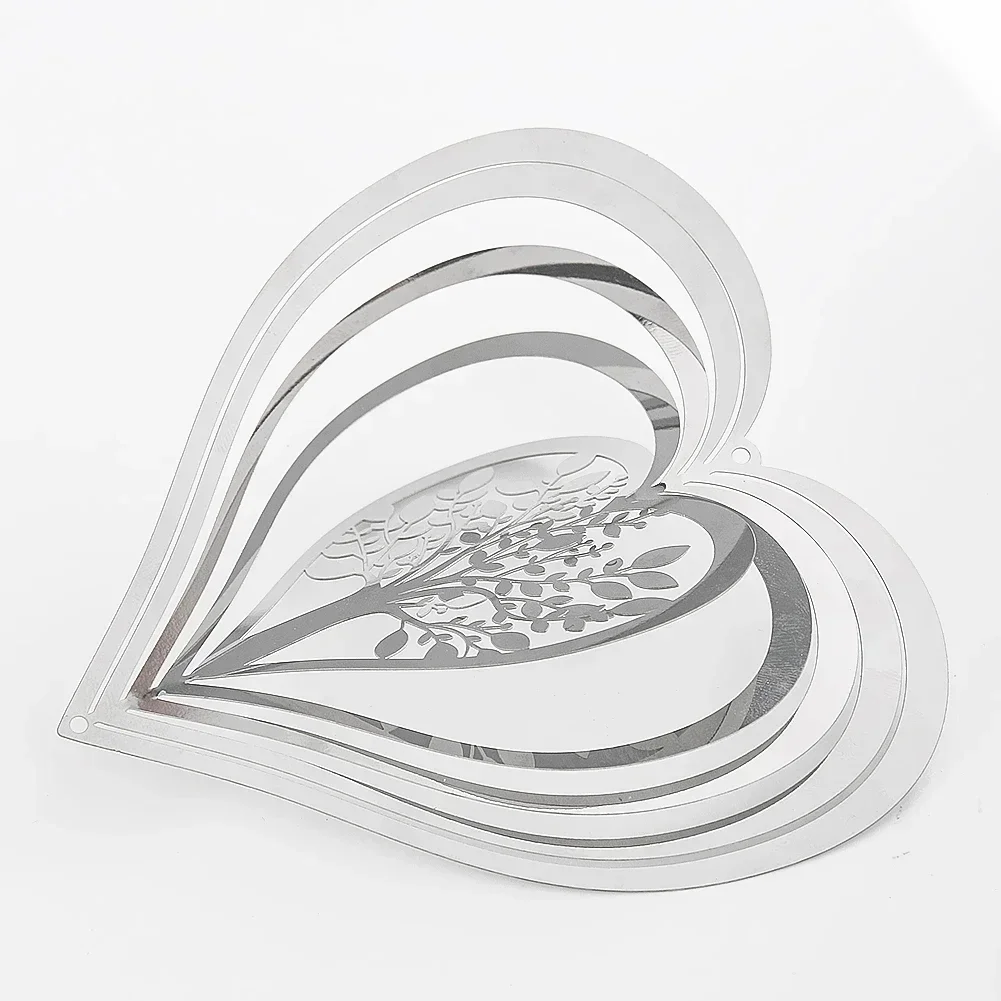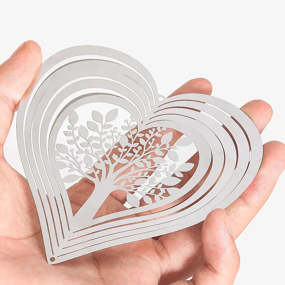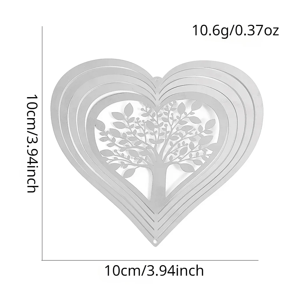 Transform your outdoor space with the enchanting Love Heart Tree of Life Wind Spinner. Crafted from stainless steel, this 3D rotating wind chime features a beautiful heart-shaped design intertwined with the Tree of Life. Its mirror finish creates a stunning display as it spins, adding a touch of elegance and peace to your garden or yard.