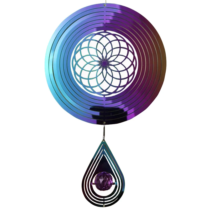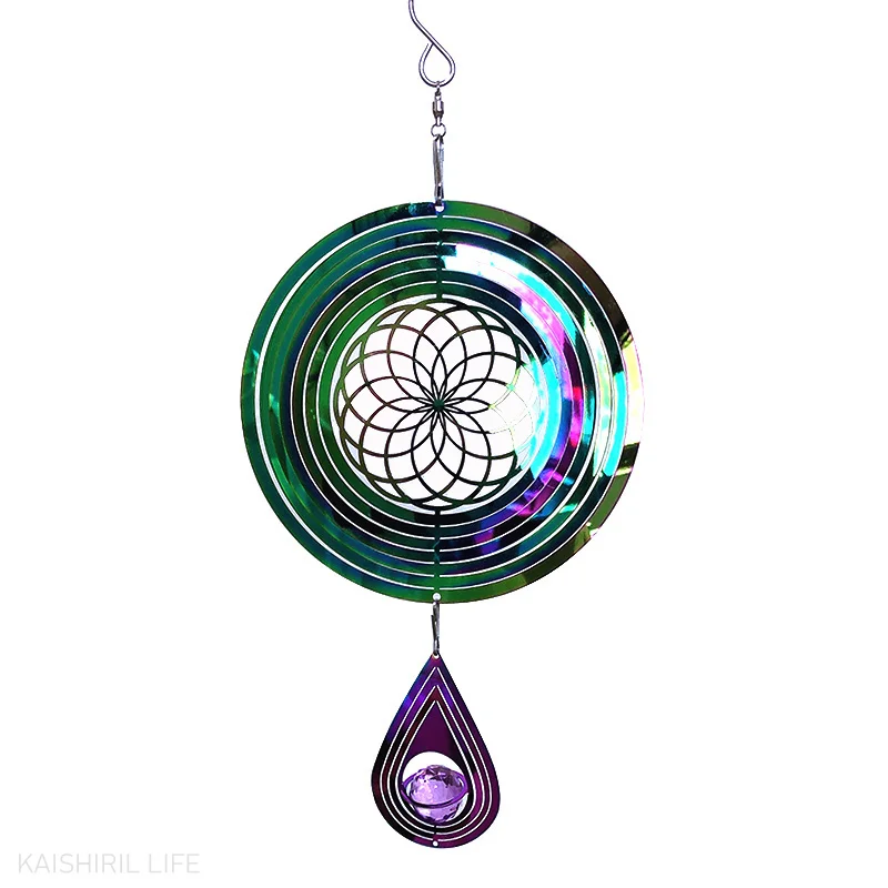 Enhance your space with the Atom Lotus with Pendant, a beautifully designed wind chime that blends artistic elegance with tranquil motion. This wind spinner features a captivating mandala pattern that rotates gracefully in the breeze, casting vibrant reflections and adding a touch of serenity to any environment. Crafted from durable stainless steel, this spinner is perfect for both indoor and outdoor decor.