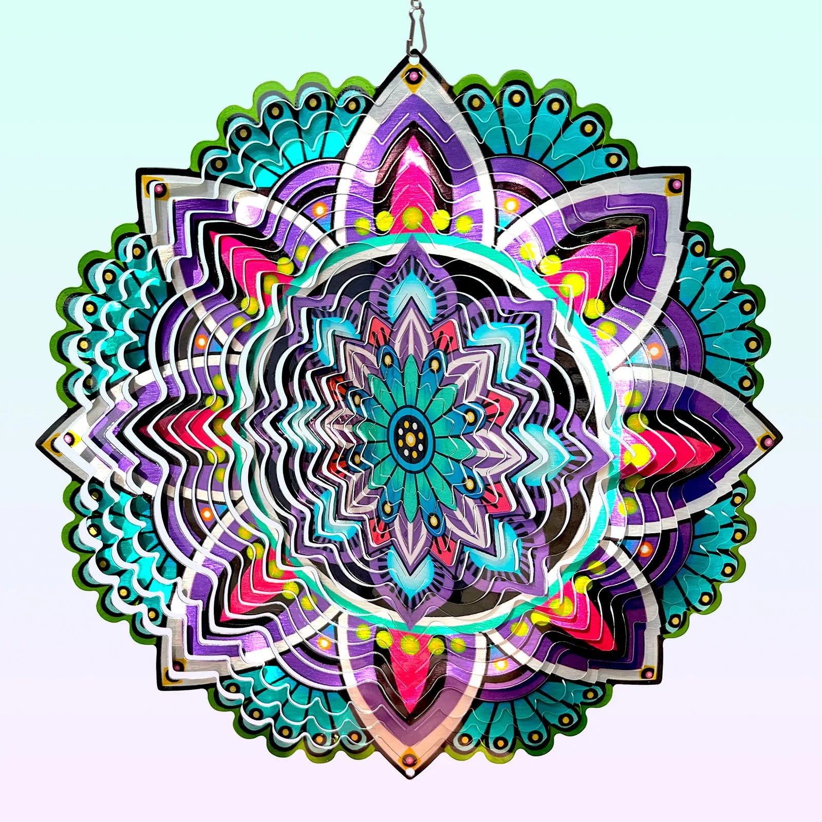 Elevate your garden or indoor space with the enchanting Mandala Purple Stars Wind Spinner. Designed to create a magical 3D visual effect as it rotates, this kinetic spinner offers a stunning blend of colors and movement, bringing peace, beauty, and a touch of wonder to any environment.