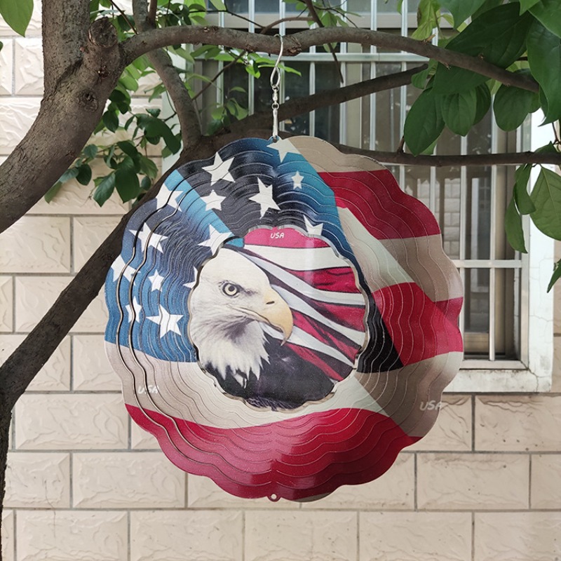 Celebrate the spirit of freedom with the Patriot's Pride Spinner, a stunning tribute to the USA's enduring values of liberty and strength. This round 3D wind spinner showcases the iconic stars and stripes of the American flag, encircling a majestic eagle at its center—a powerful symbol of courage and independence. Crafted from high-quality stainless steel, this spinner is designed to make a bold statement in any space, indoors or out.