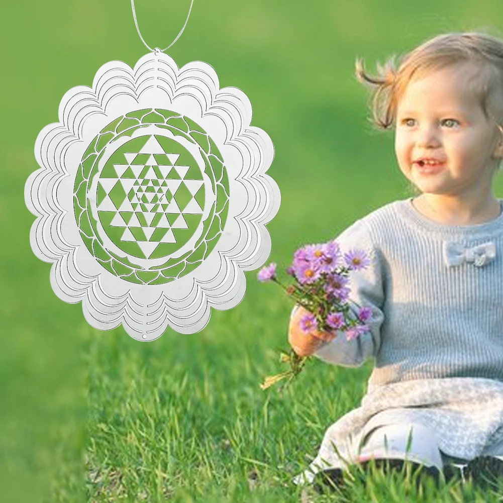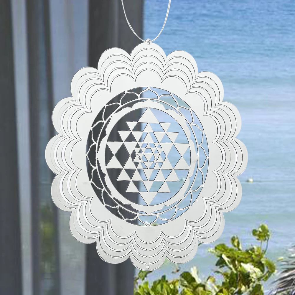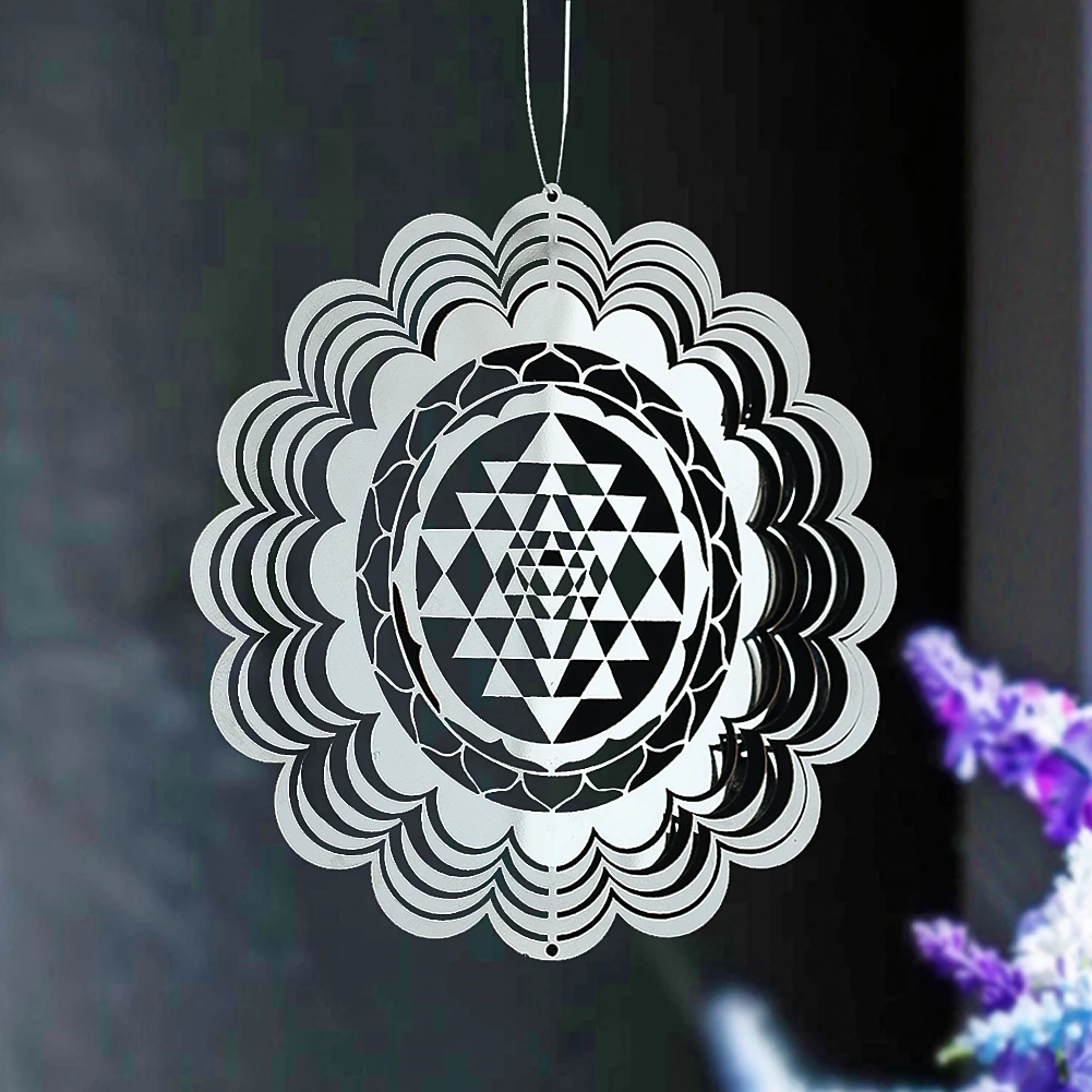Infuse your home and garden with the profound beauty of sacred geometry through the Sacred Geometry 3D Wind Spinner. This mesmerizing whirligig features a flowing mandala lotus design, symbolizing harmony and balance. Crafted from stainless steel with a mirror-like finish, it reflects light beautifully, creating a captivating display as it dances in the breeze. Perfect for both indoor and outdoor settings, this wind spinner brings tranquility and mindfulness to your space.