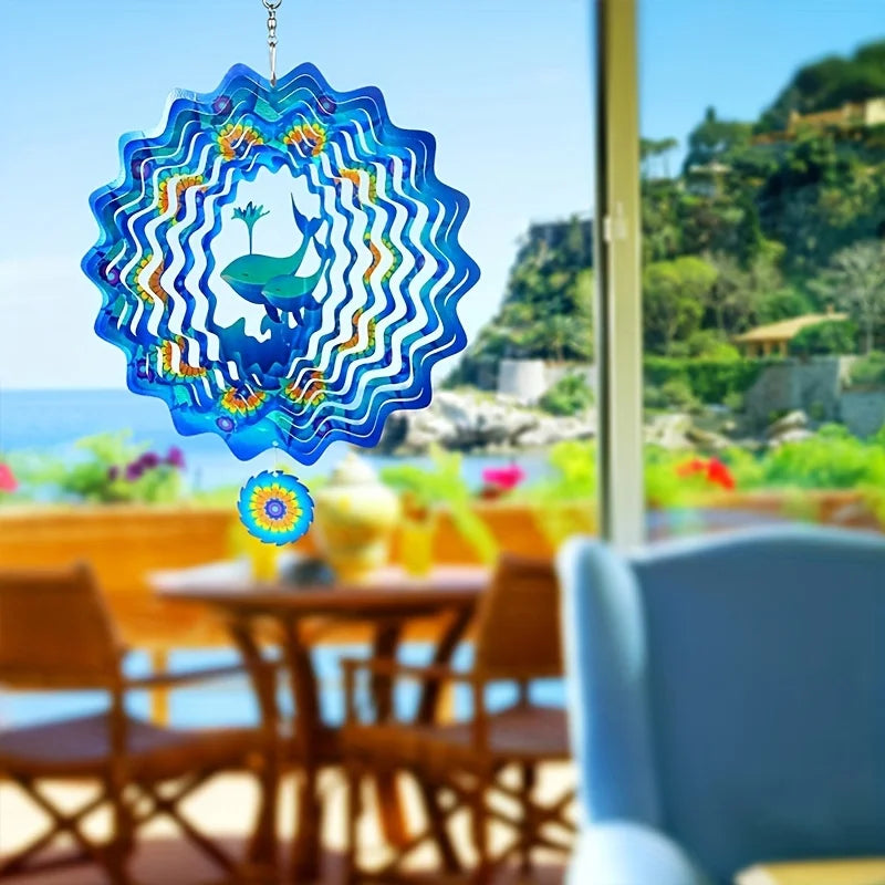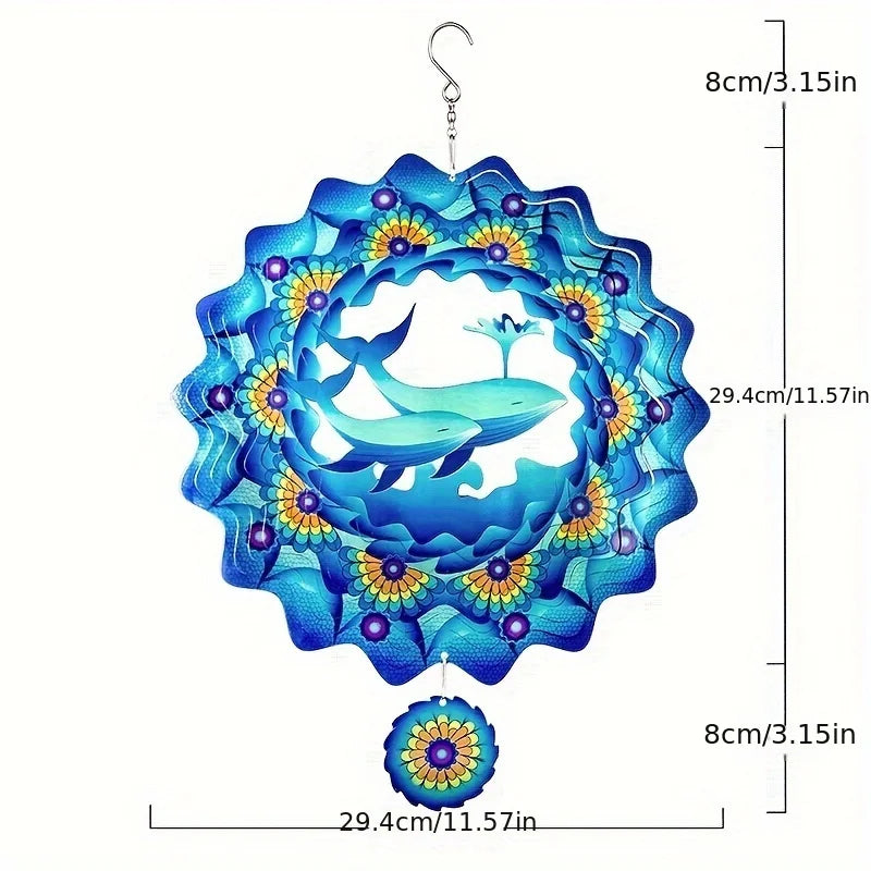 🌊 Mesmerizing Ocean Vibes: The Whales Dance wind spinner showcases an intricate mandala and whale-inspired geometric pattern, creating a tranquil, fluid motion that captures the spirit of the sea.